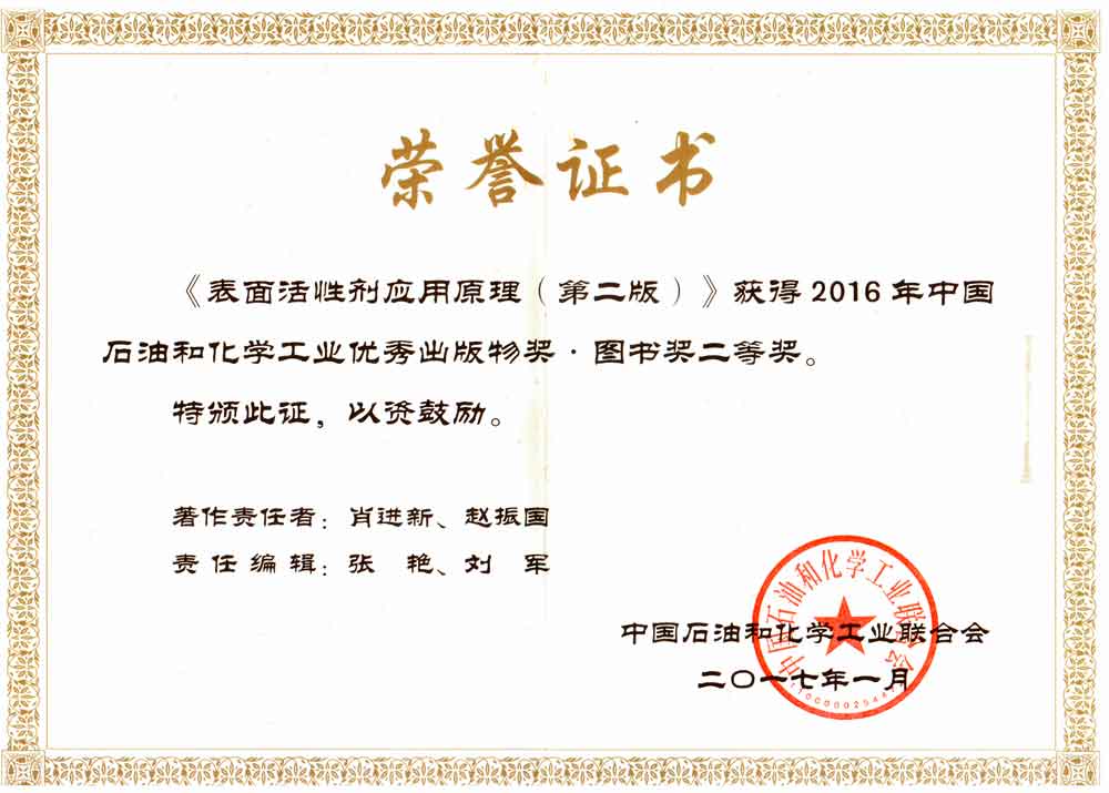 荣誉:2016年中国石油和化学工业优秀出版物奖:图书奖二等奖